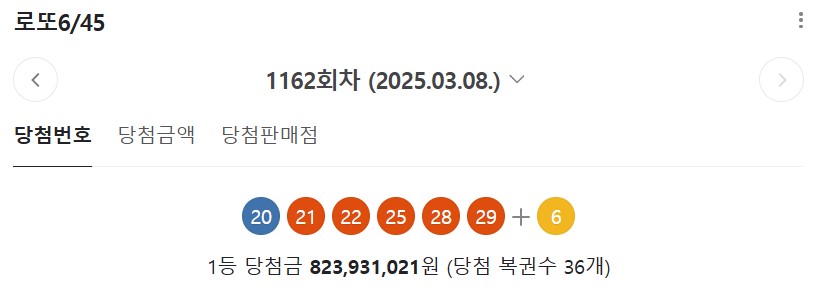 📢 제1162회 로또 당첨 번호가 전부 20번대에서 나오면서 이례적인 상황이 발생했습니다.